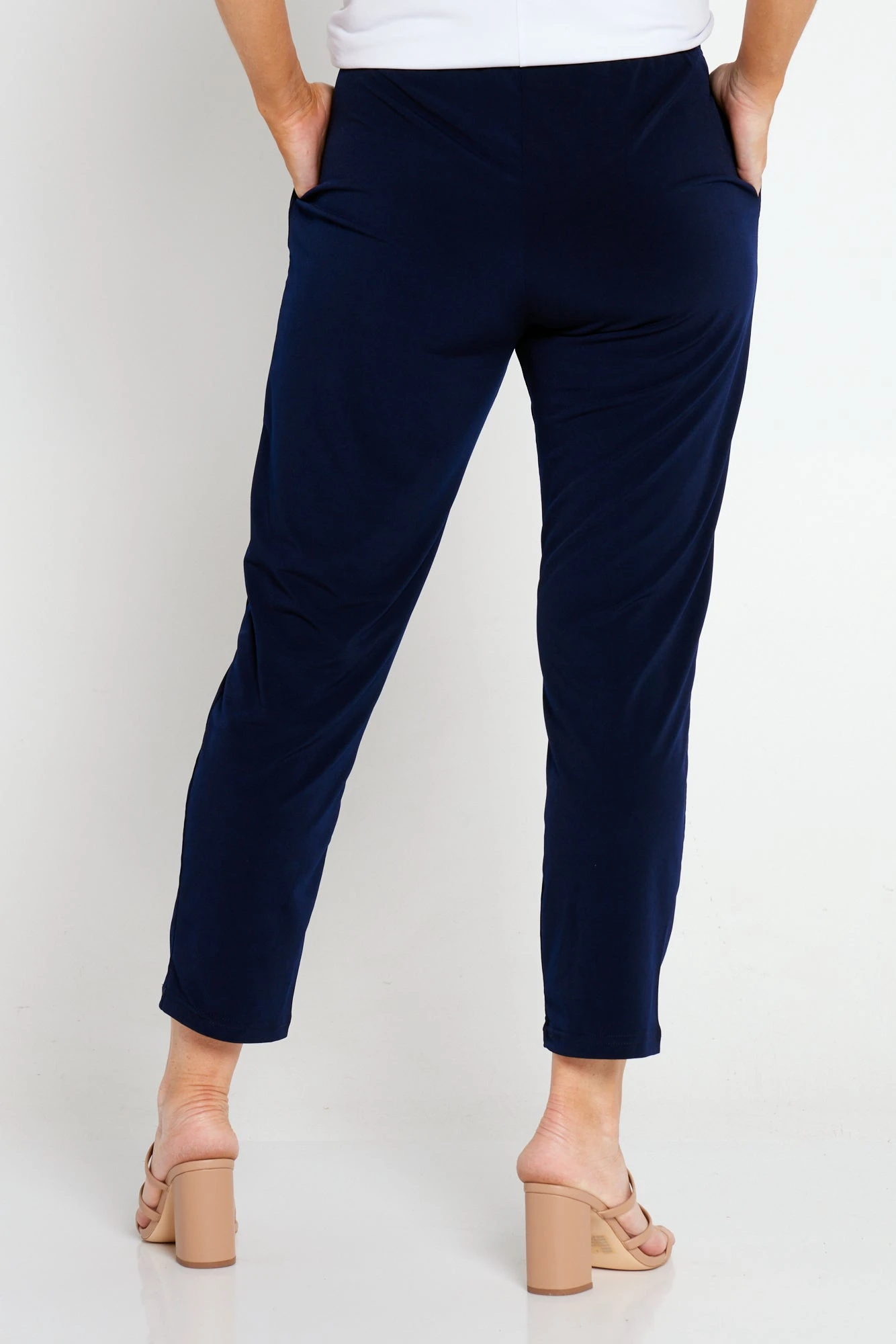 An everyday essential with a sleek finish, the Averaine Pocket Pants in Dark Navy are designed to make getting dressed feel effortless. Cut in an easy-care stretch jersey that moves with you and resists wrinkles, this pull-on style keeps a smooth silhouette while adding the practicality you asked for-discreet in-seam pockets on both sides.