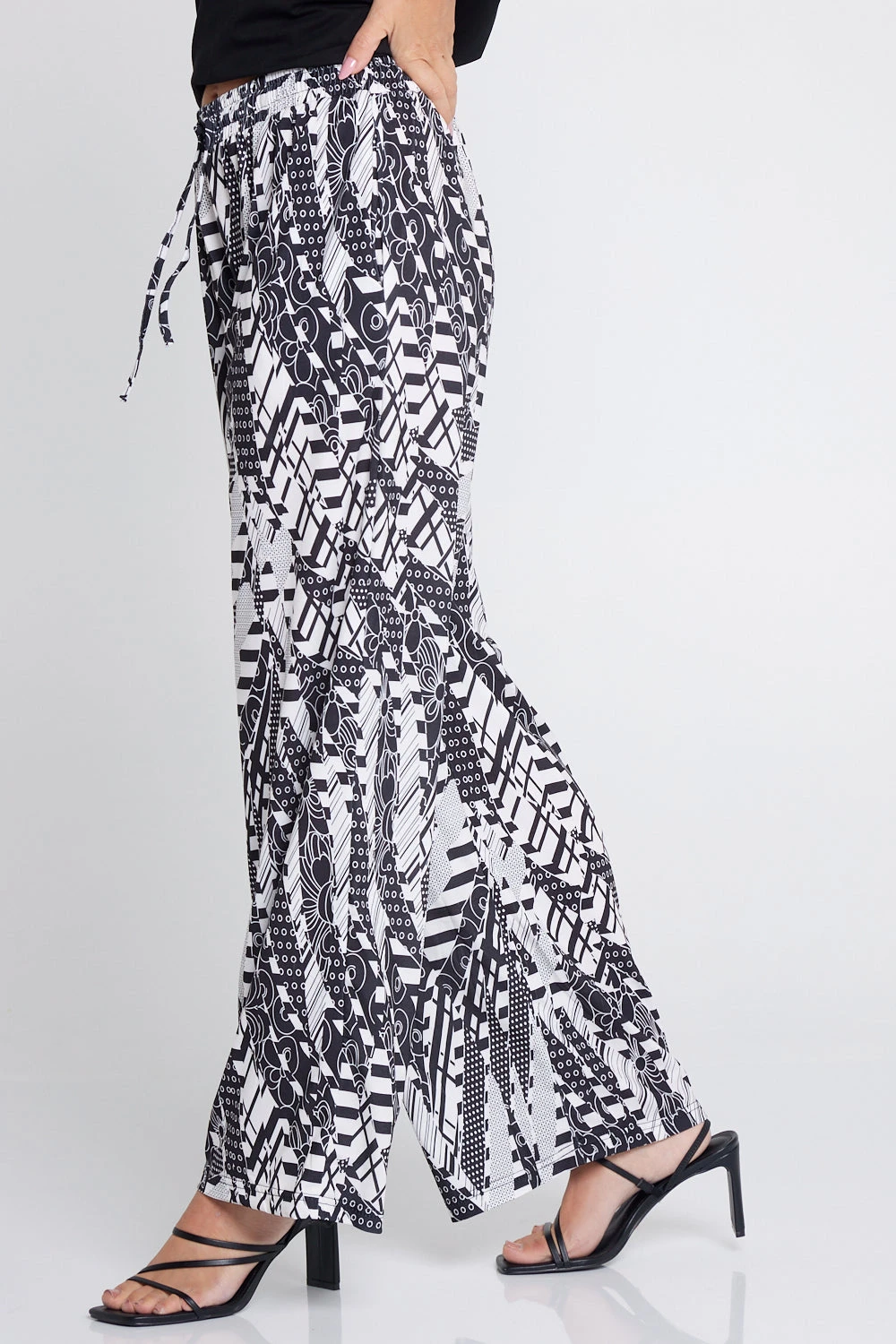 - Design: Elasticised waistband, adjustable drawstring tie, wide legs, side seam pockets