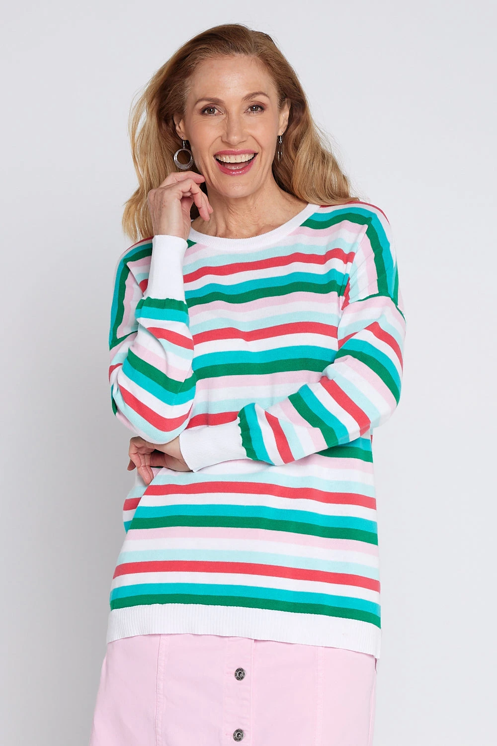 This knit makes getting dressed simple: the colourful stripes instantly lift a basic outfit, while the lightweight cotton keeps you comfortable throughout the day, great for layering when temperatures change.
